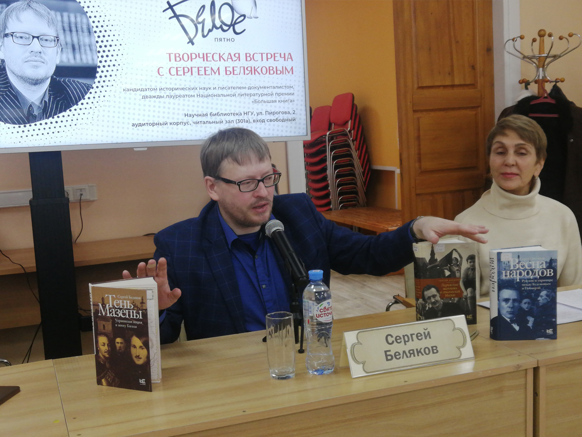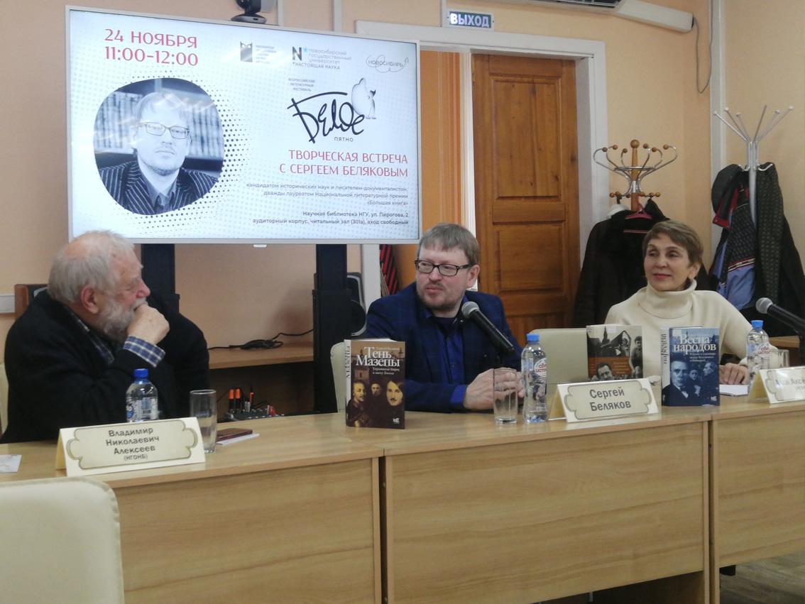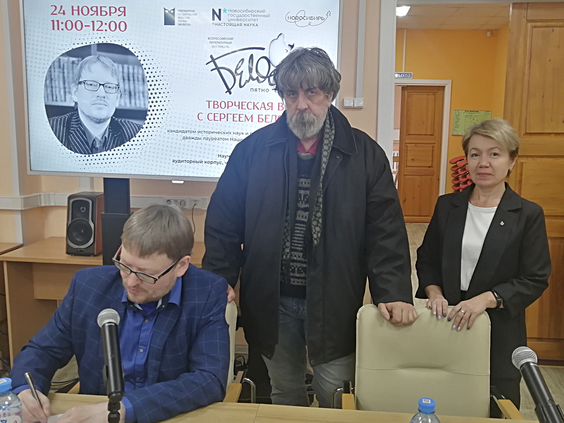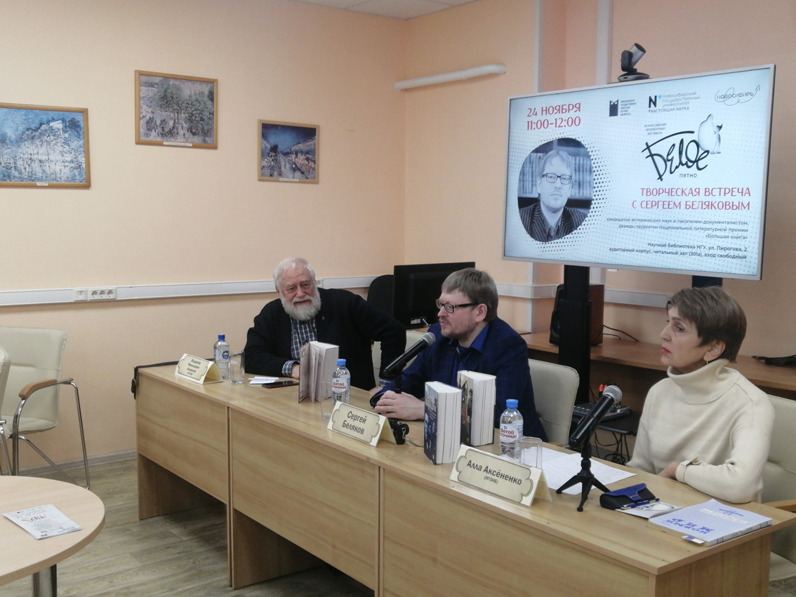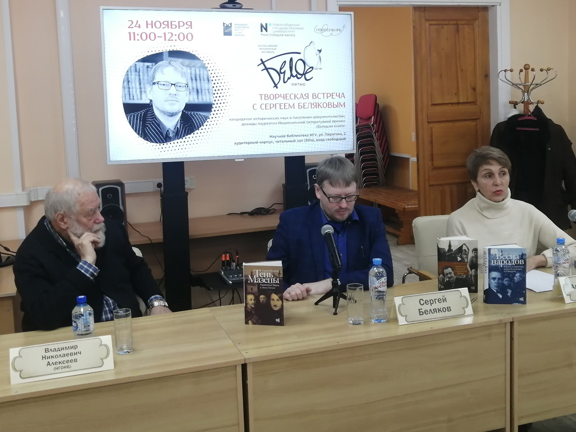 On Friday, November 24, a meeting with the writer was held at the NSU Scientific Library-documentarian, candidate of historical sciences Sergei Belyakov. Visitors were able to learn about the writer himself, about his new book “Mazepa’s Shadow” and about the prospects of his work. The event took place as part of the XIV All-Russian Literary Festival "White Spot", which is held with the support of the Ministry of Culture of the Novosibirsk Region.